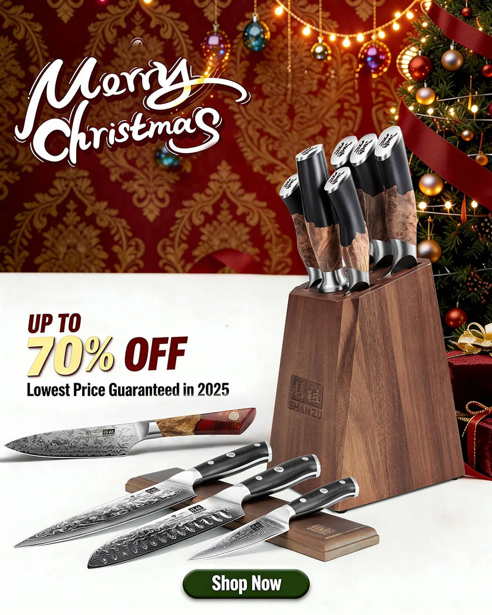 SHAN ZU Venus Series | 3-Piece Copper-Damascus Knife Set + 12" Magnetic Knife Holder