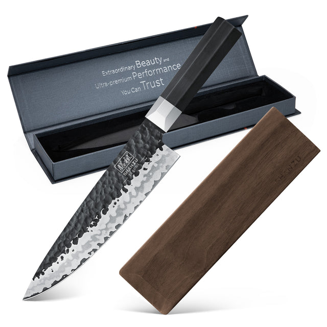 Whether you're a professional chef or an amateur cook, the SHAN ZU 8.07” Japanese chef's knife from the Takumi series is an essential tool in the kitchen. Its exceptional sharpness, durability and elegant design make it an indispensable tool for anyone who appreciates the art of Japanese cuisine.