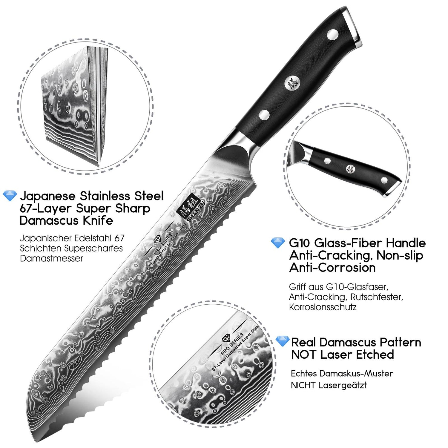 SHAN ZU 8" Damascus Bread Knife | G10 Handle & Razor-Sharp Serrated Blade | Perfect for Bread, Pastries & Cakes – SHANZU GLOBAL SHOP