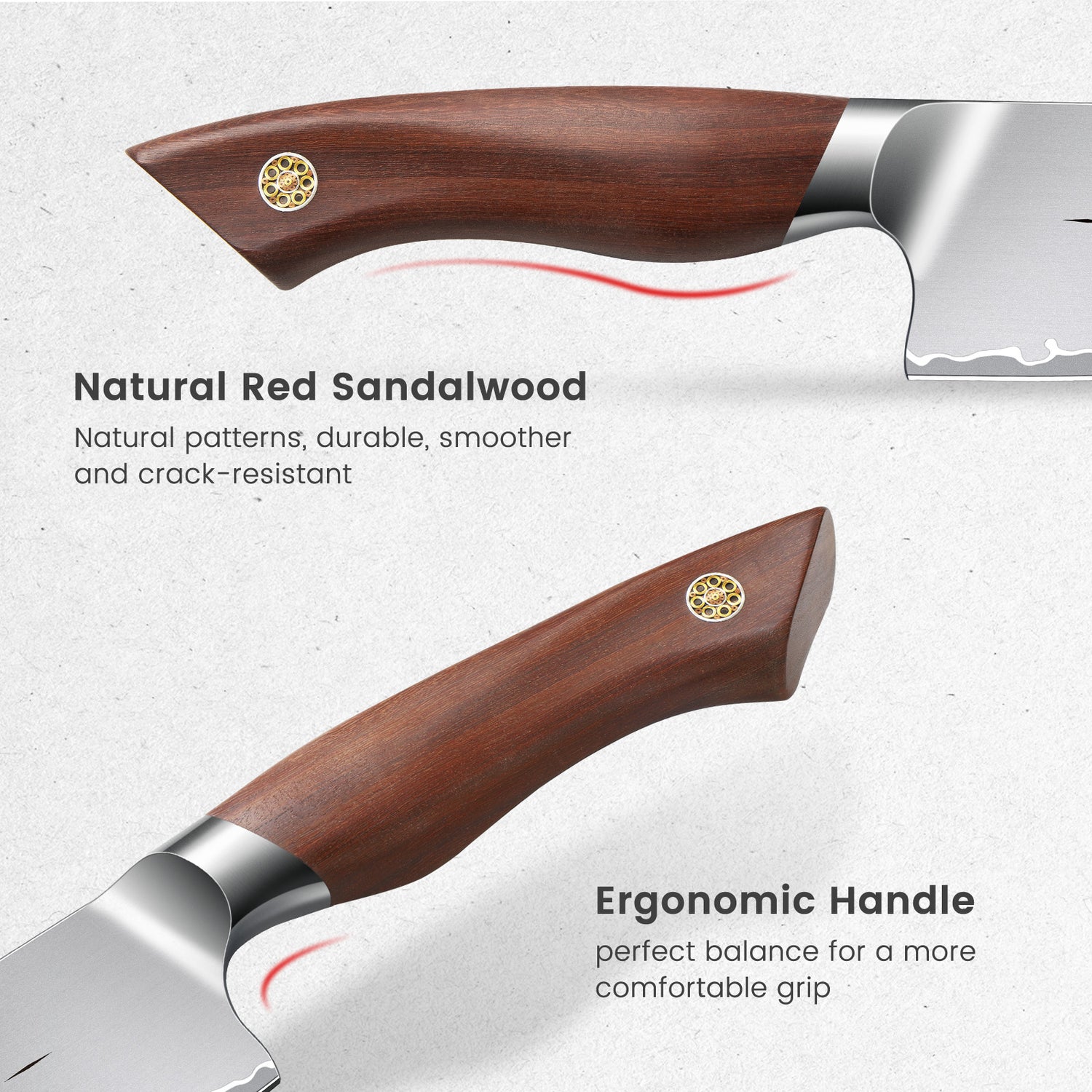 Ergonomic Sandalwood Handle: Offers a comfortable, non-slip grip for extended use.